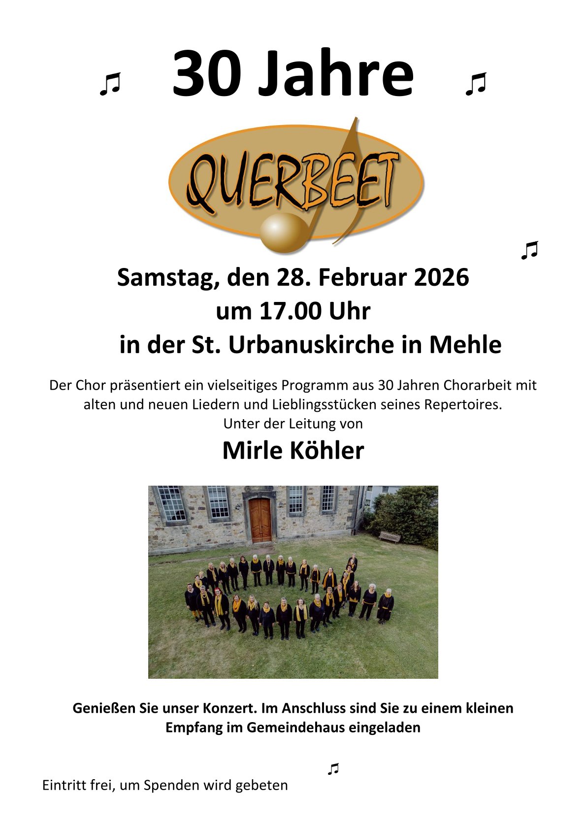 28. Februar Jubiläumskonzert 30 Jahre Querbe(e)t in Mehle 17 Uhr