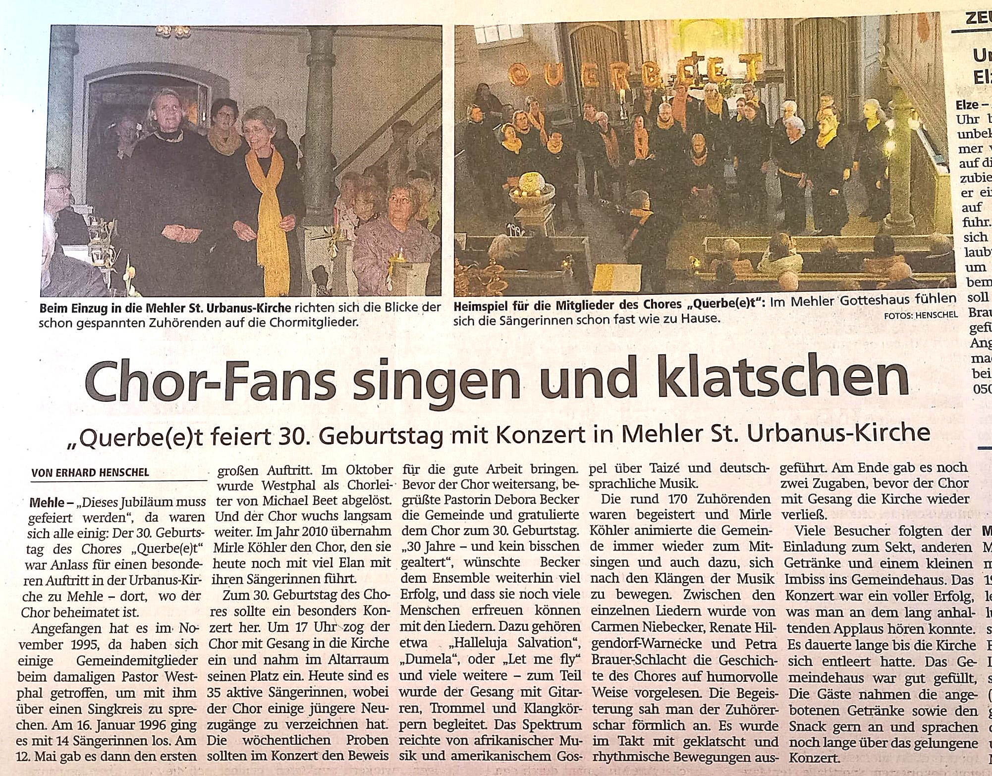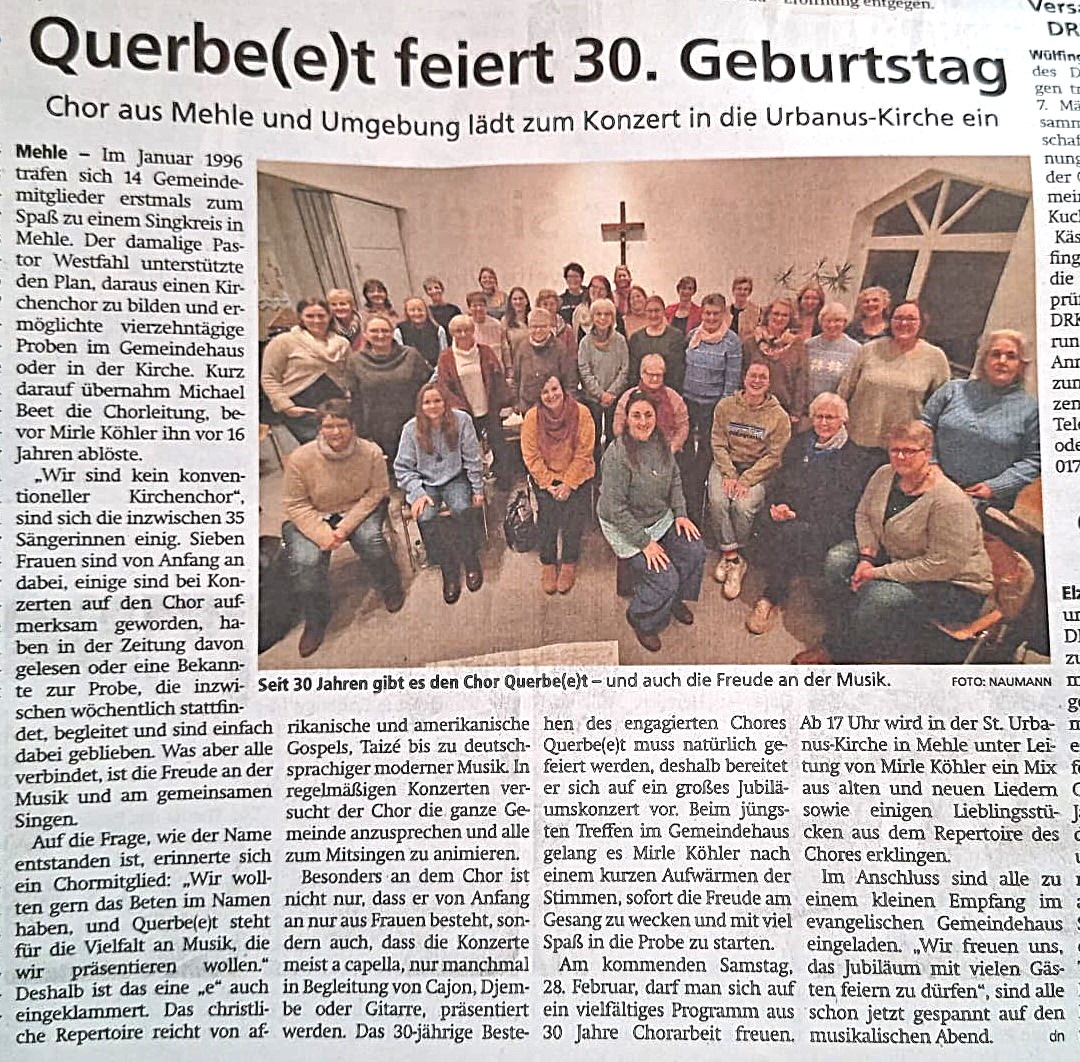 28. Februar Jubiläumskonzert 30 Jahre Querbe(e)t in Mehle 17 Uhr